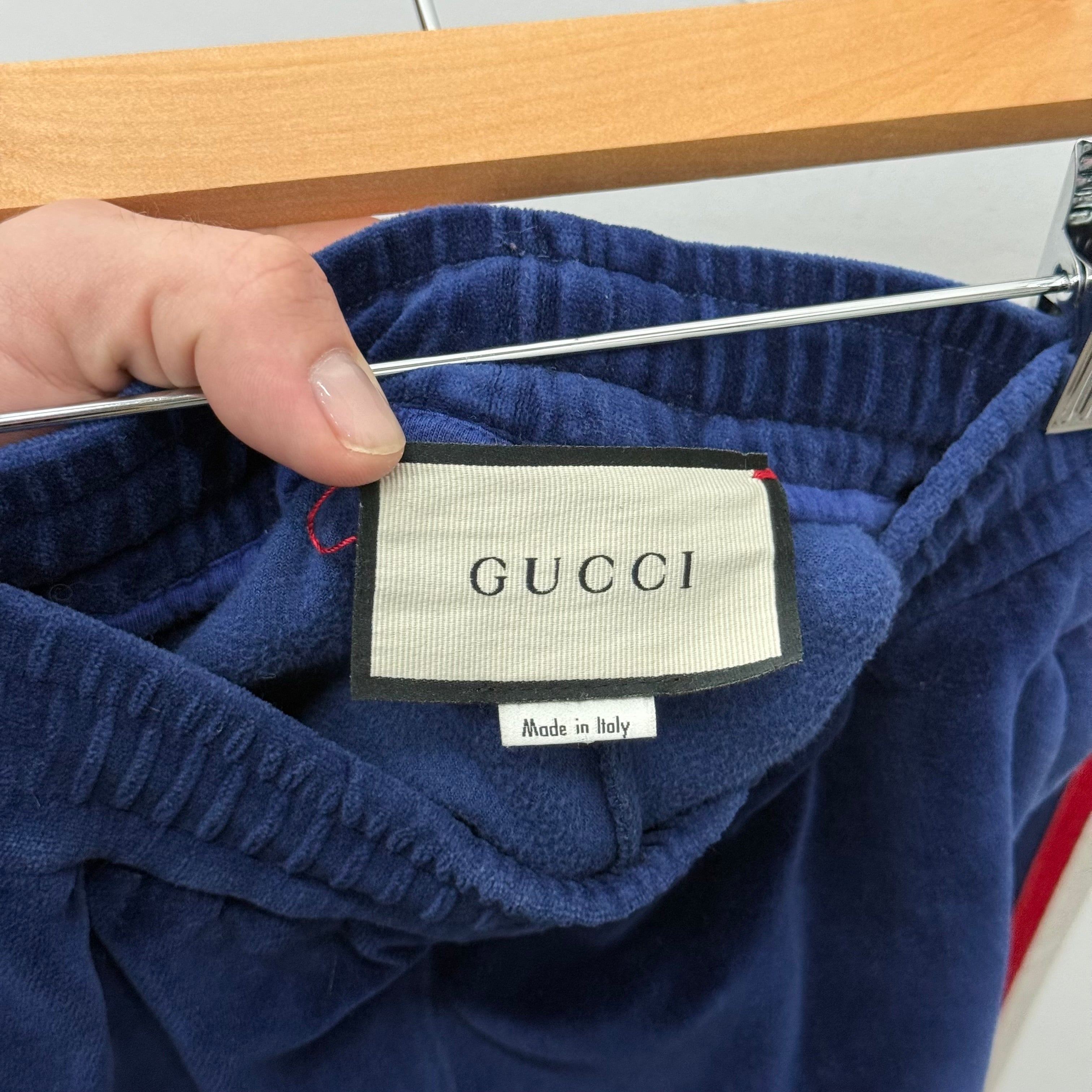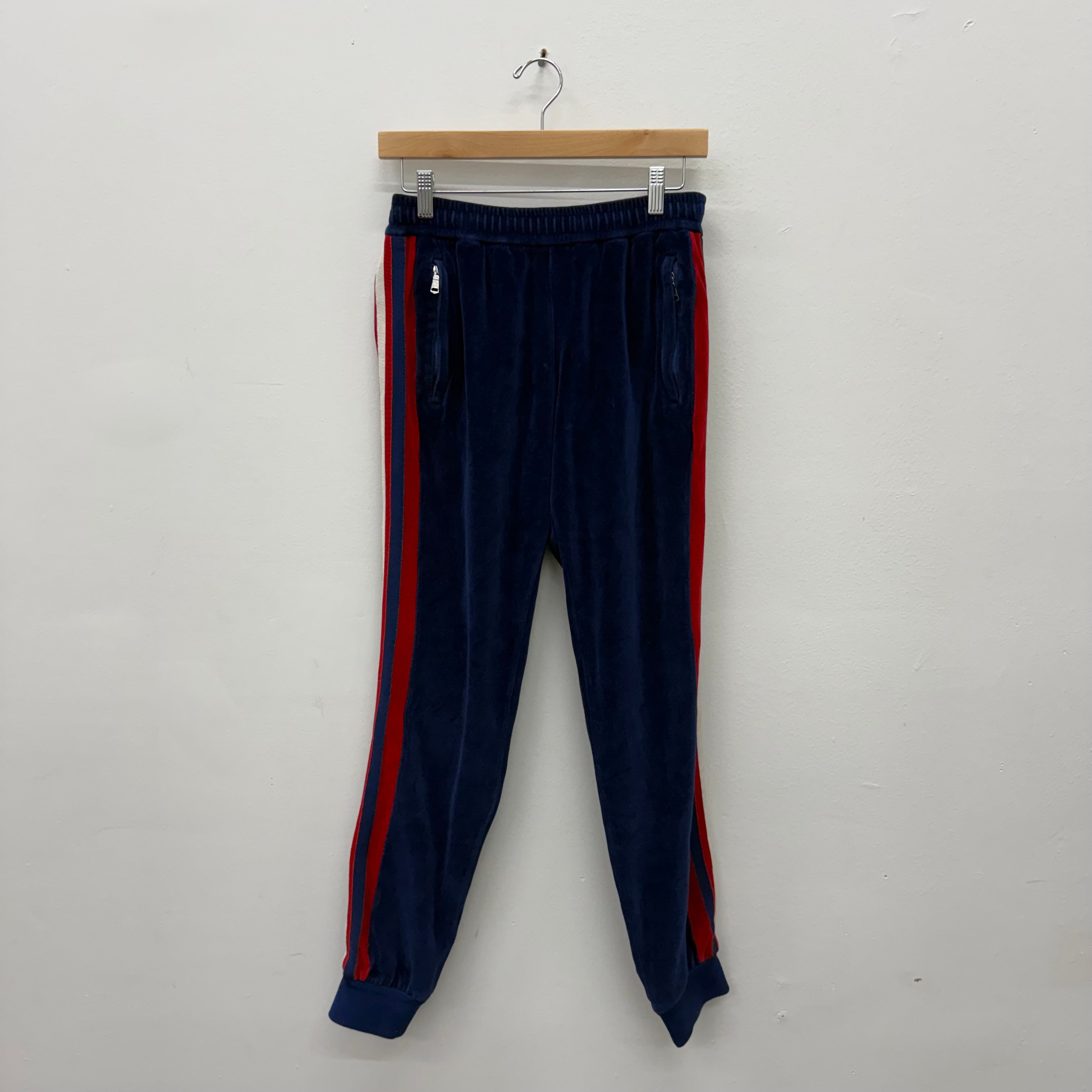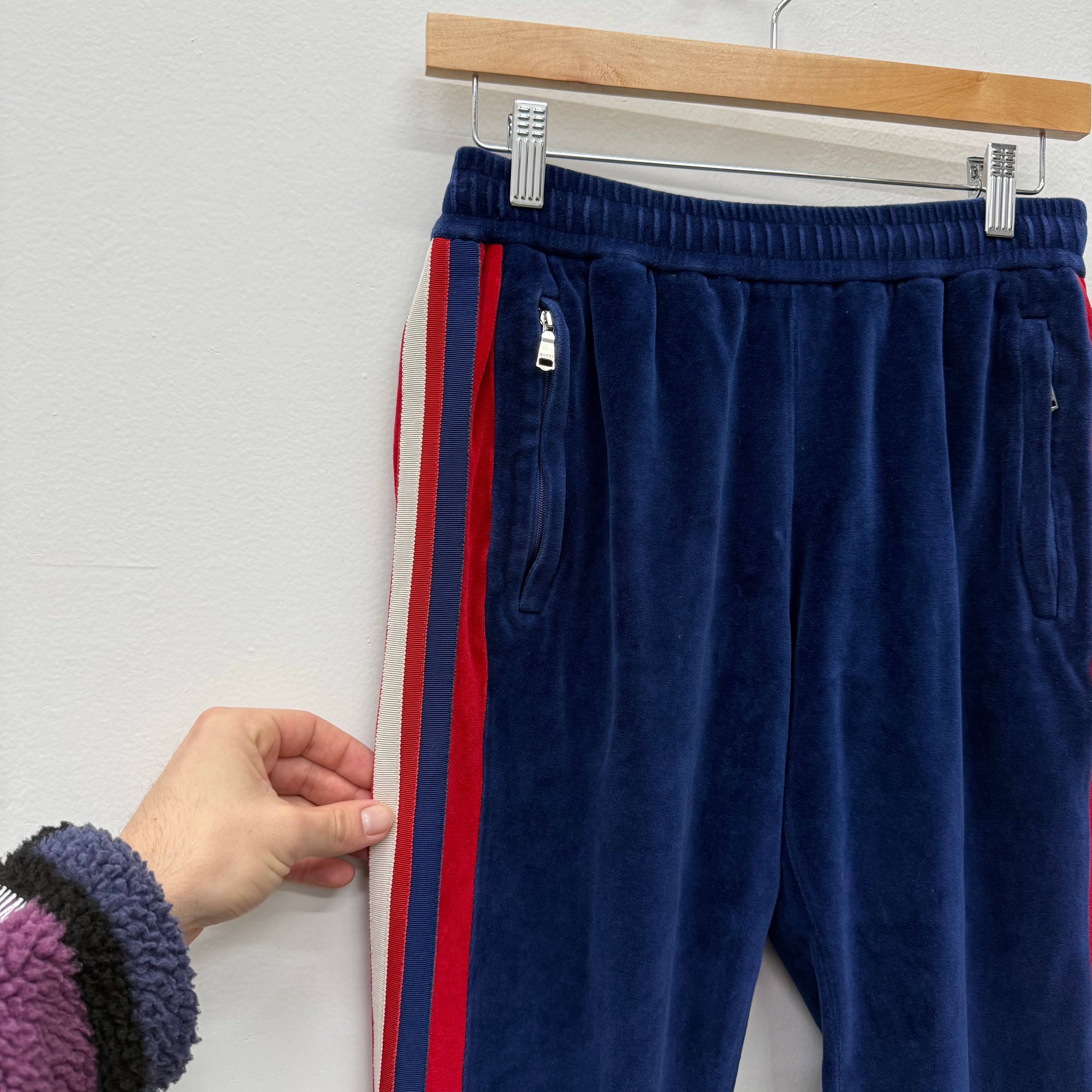 Gucci Blue/Red Stripe Velvet Track Sweatpants - Size S